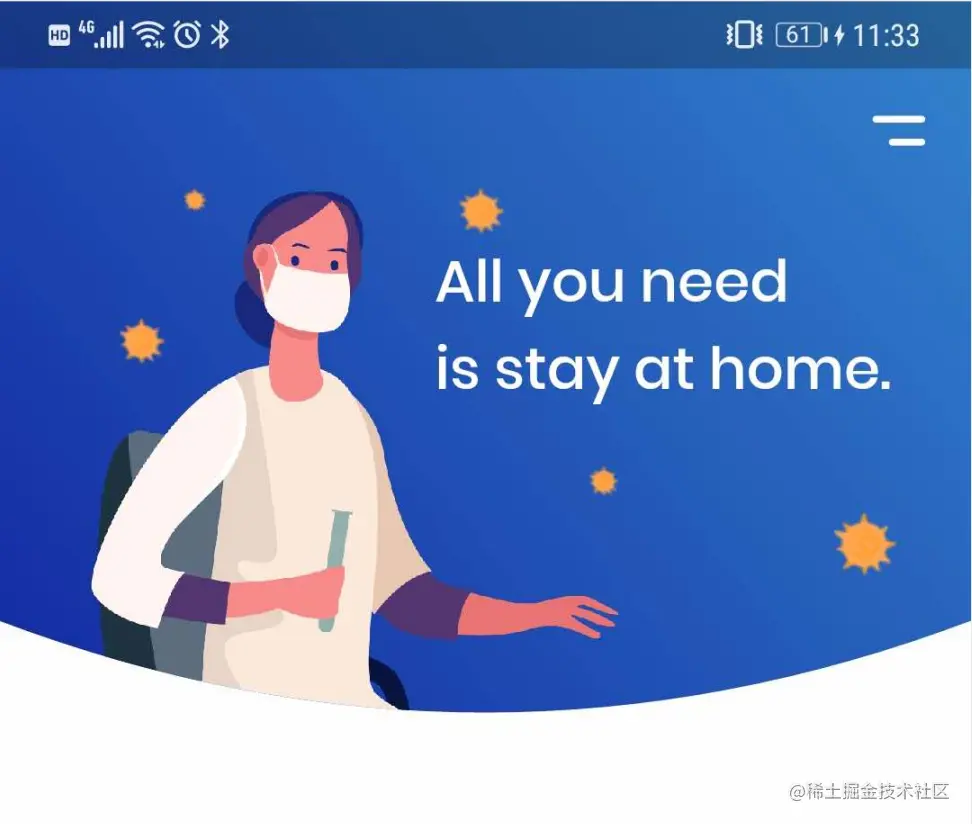 一般公司美工的设计图中增加了许多曲线设计,比如个人页面,还有首页的一些页面,之前比较偷懒的方式是让美工同学做一个PNG的透明图片,然后外边放一个Container.但其内容如果本身就不是图片,只是容器,这种放入图片的做法会让包体变大。其实我们完全可以使用贝塞尔曲线进行切割。页面如下图这种: