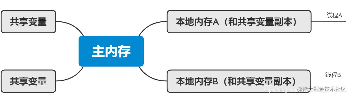 Java内存模型(简称JMM),JMM决定一个线程对共享变量的写入何时对另外一个线程可见。从抽象的角度看,JMM定义了线程和主内存之间的抽象关系:线程之间共享变量存储在主内存(main memory)中,每个线程都有一个私有的本地内存(local memory),本地内存中存储了该线程以读 | 写共享变量的副本。