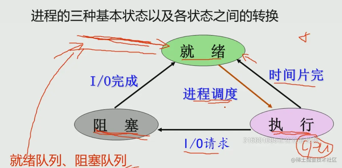 - 进程已获得运行所必需的资源,它正在处理机上执行