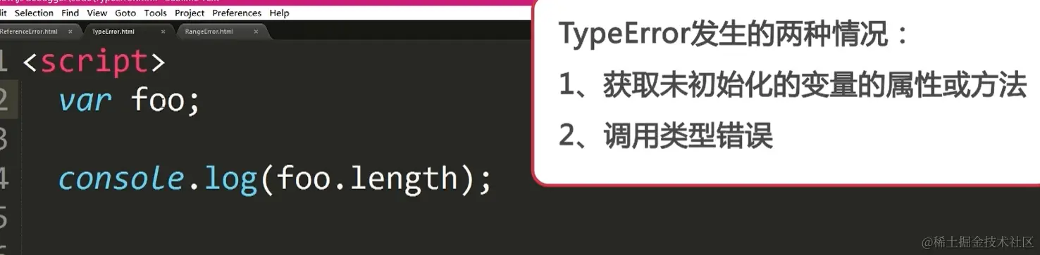 - TypeError:类型使用错误时触发或者获取未初始化的变量的属性或方法