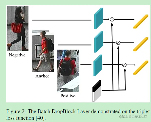 Batch DropBlock在triplet hard mining loss的示意图如下图2: