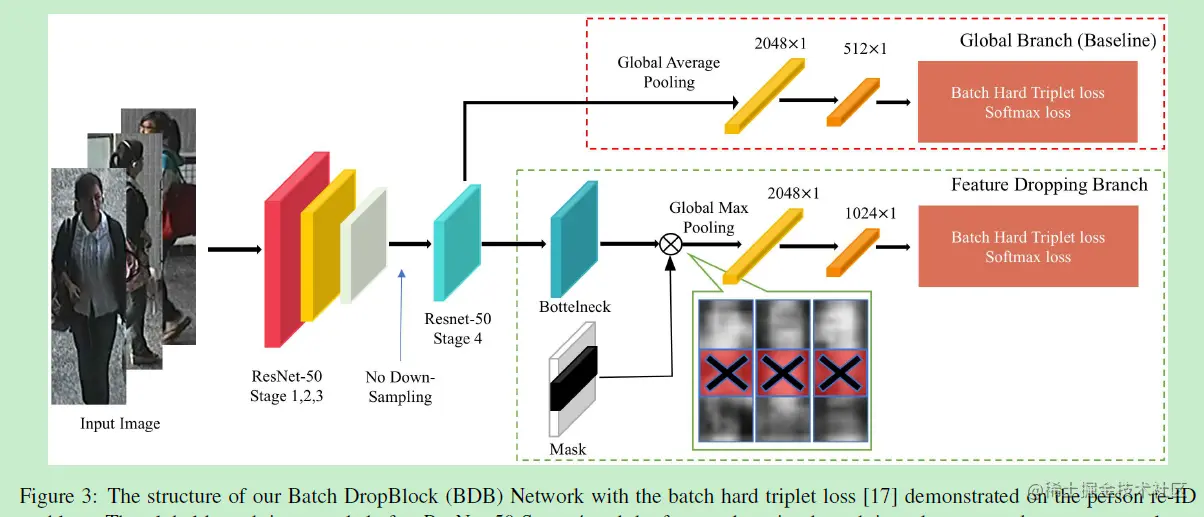 其中Batch DropBlock将随机去除所有feature map相同区域的信息(即相同的语义主体部分),以迫使网络关注未被擦除的部分。