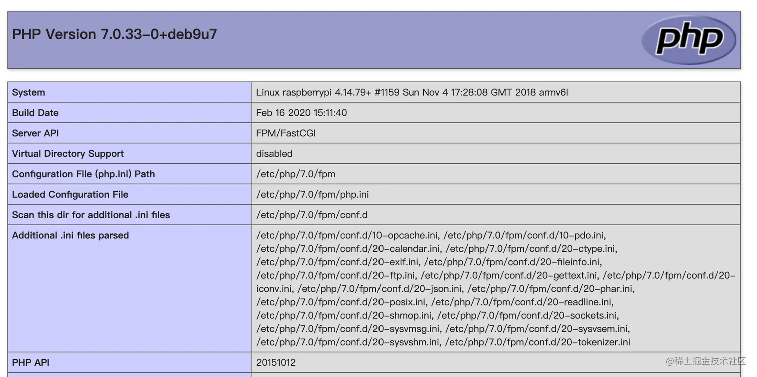 如果看到下图的php的版本信息就成功开启PHP服务了