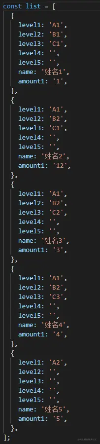 - 第一列前4个都是A1所以需要合并,A2单独一列无需合并