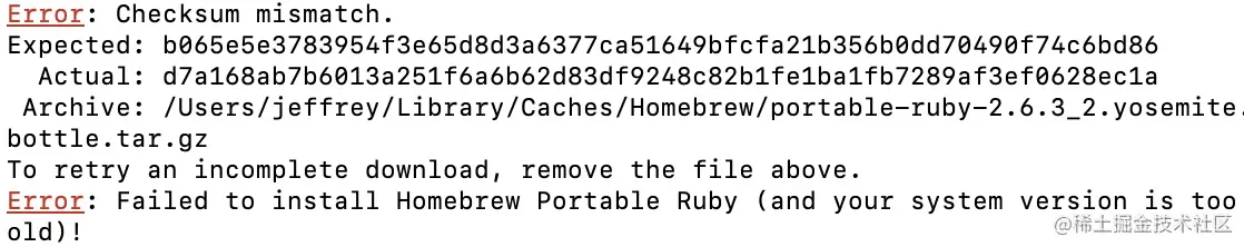 $ rm /Users/youname/Library/Caches/Homebrew/portable-ruby-2.6.3_2.yosemite.bottle.tar.gz