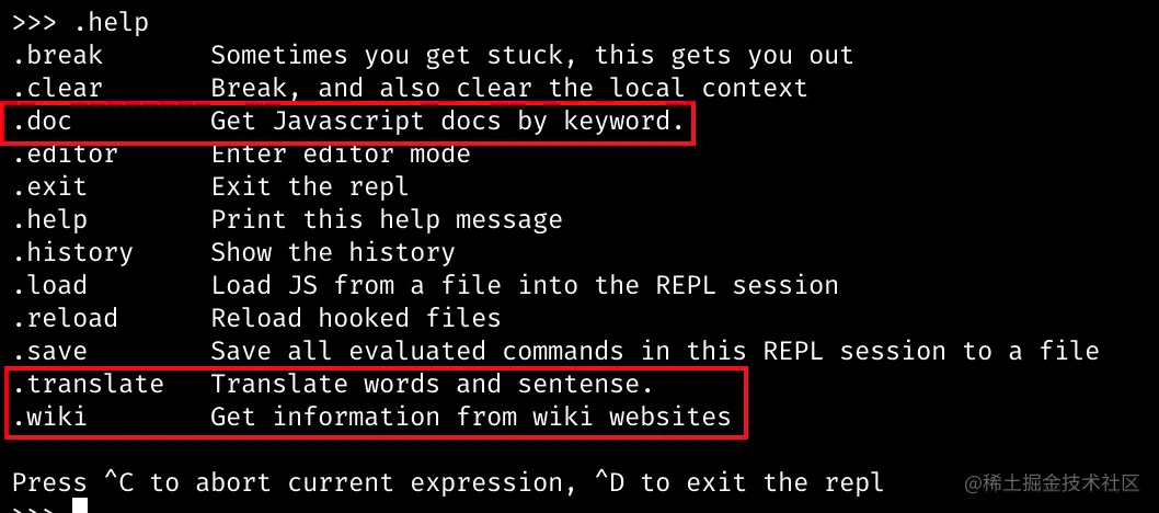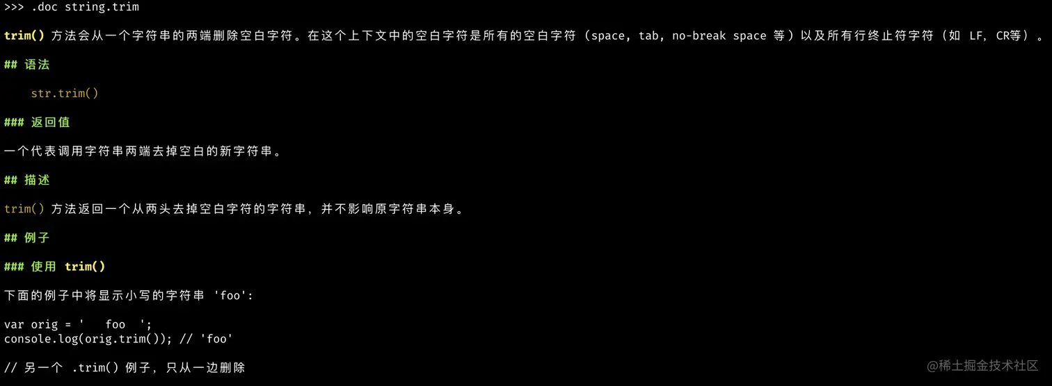 很容易理解不是嘛,这里文档比较长,只截取了一部分。大家有没有觉得很神奇,竟然在 REPL 里做到了这件事,感兴趣的同学可以去看看源码,原理十分简单,这里就当工具给大家介绍了。
