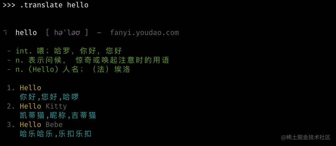 当然,大家有很多方式查单词,但是在一个 REPL 里难道不可以做的事情越多越好嘛?可能部分同学会喜欢呢!