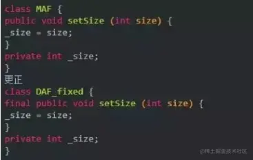 如:让访问实例内变量的getter/setter方法变成”final: