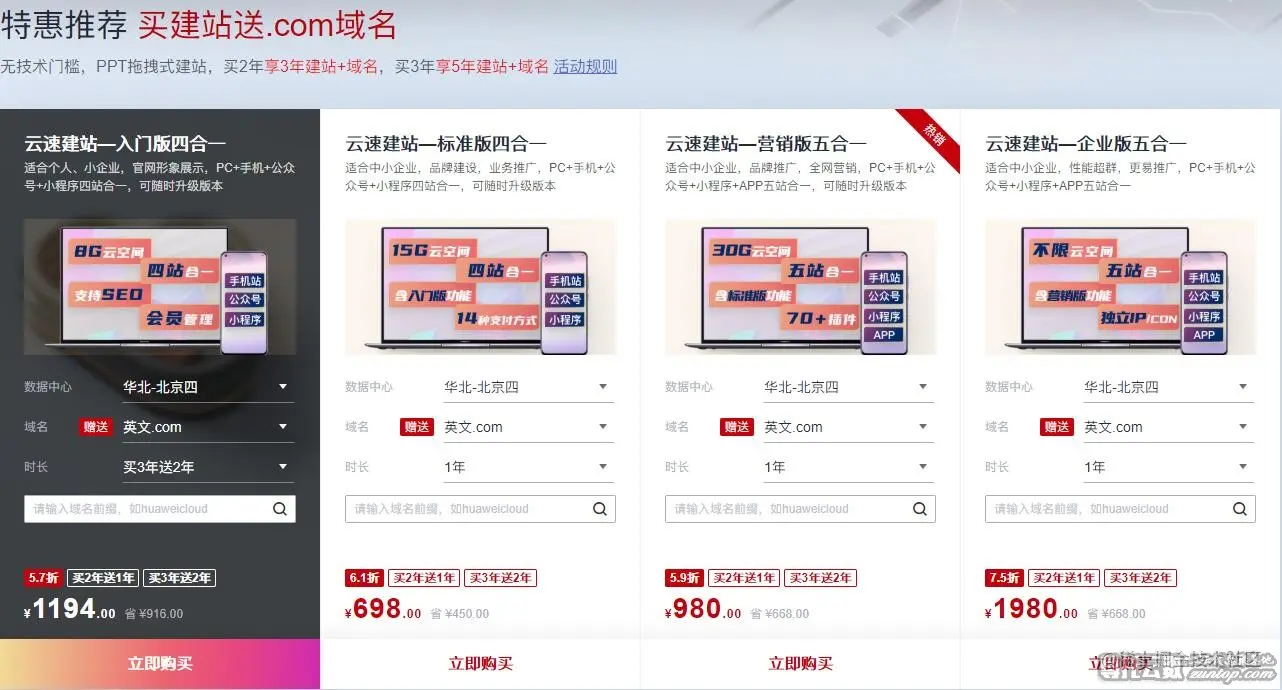 [华为云建站](https://activity.huaweicloud.com/domainwebsite_promotion/index.html?fromacct=525a03cf-8bd2-4921-b724-84ea259121fb&utm_source=V1g3MDY4NTY=&utm_medium=cps&utm_campaign=201905)([直达链接:http://9i0i.cn/huaweicloudjz](http://9i0i.cn/huaweicloudjz)):