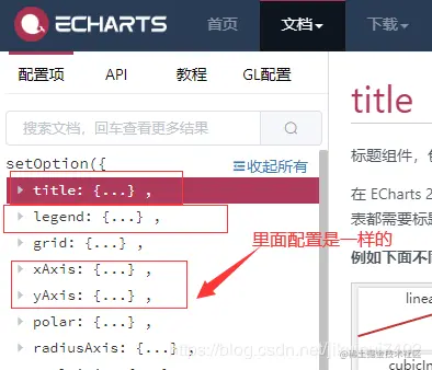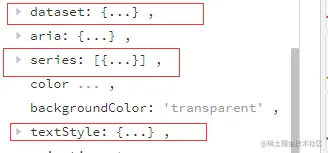 1.1 常用项主要有title legend xAxis yAxis legend dataset series textStyle 如下图所示