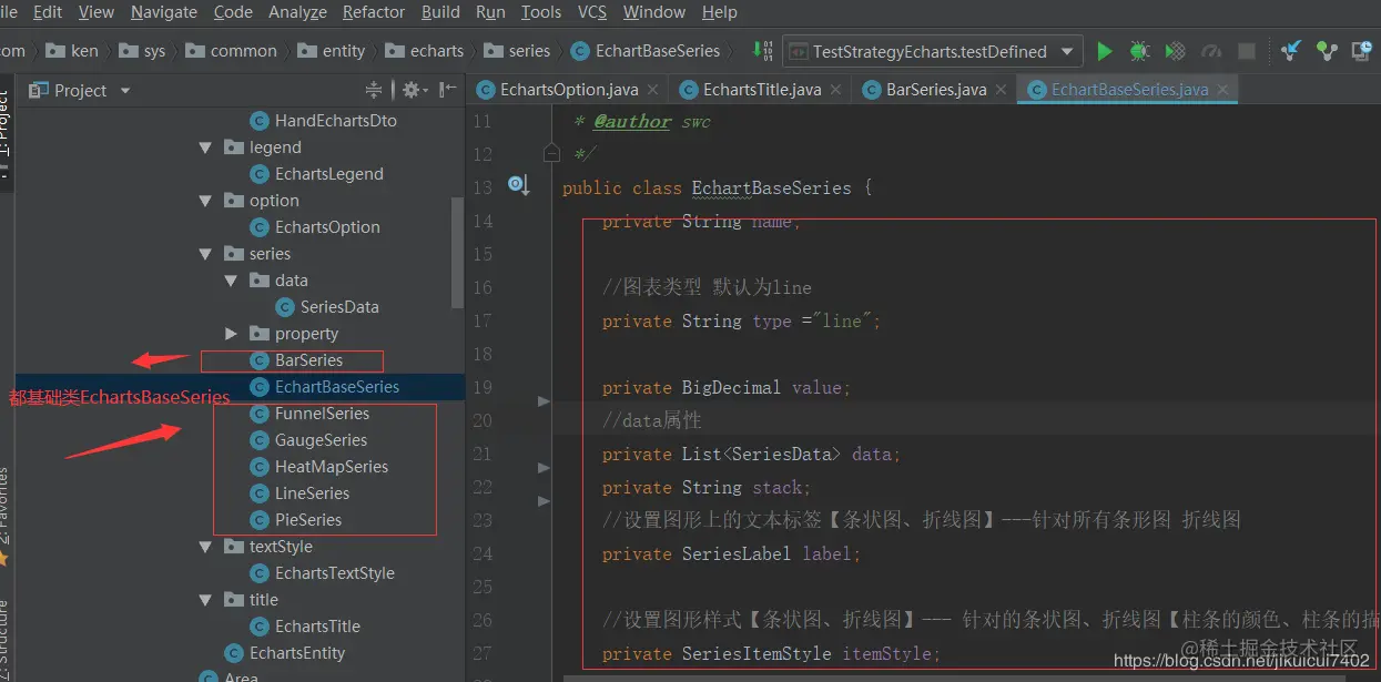 这里简单说一下 series 使用基类【EchartBaseSeries】 其他如饼图 折线图等的series都是集成EchartBaseSeries