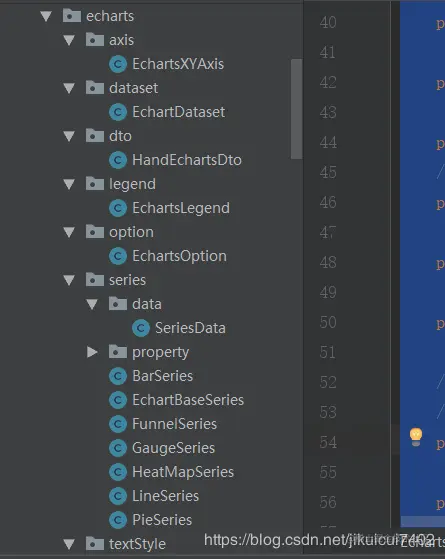 二、建立Echarts的option类 我在此命名为EchartsOption 【注:后面一般option下直接属性 java命名前缀都是Echarts】
