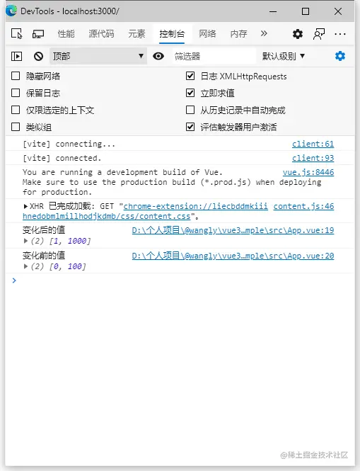 关于对象的监听就变得非常有意思了,需要对你进行一个函数包裹才能被watch进行识别,同样的,也支持多个属性的监听,但是看起来其实也蛮怪的。