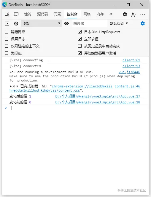 当出现如下界面,代表着项目成功运行,在浏览器通过任意一个serve地址都可以访问到Vue的内容。
