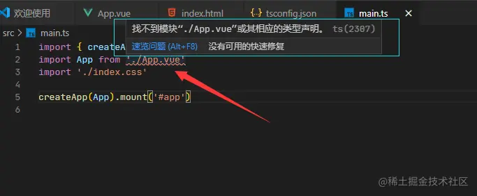先将main.js 改名为main.ts ,在index.html的引入中,名字对应的也改掉