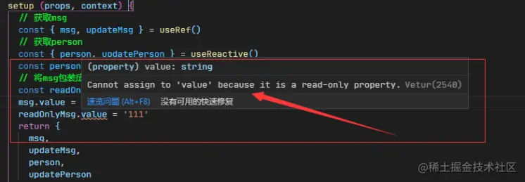 console.log('readOnlyMsg是否是可读的', isReadonly(readOnlyMsg))