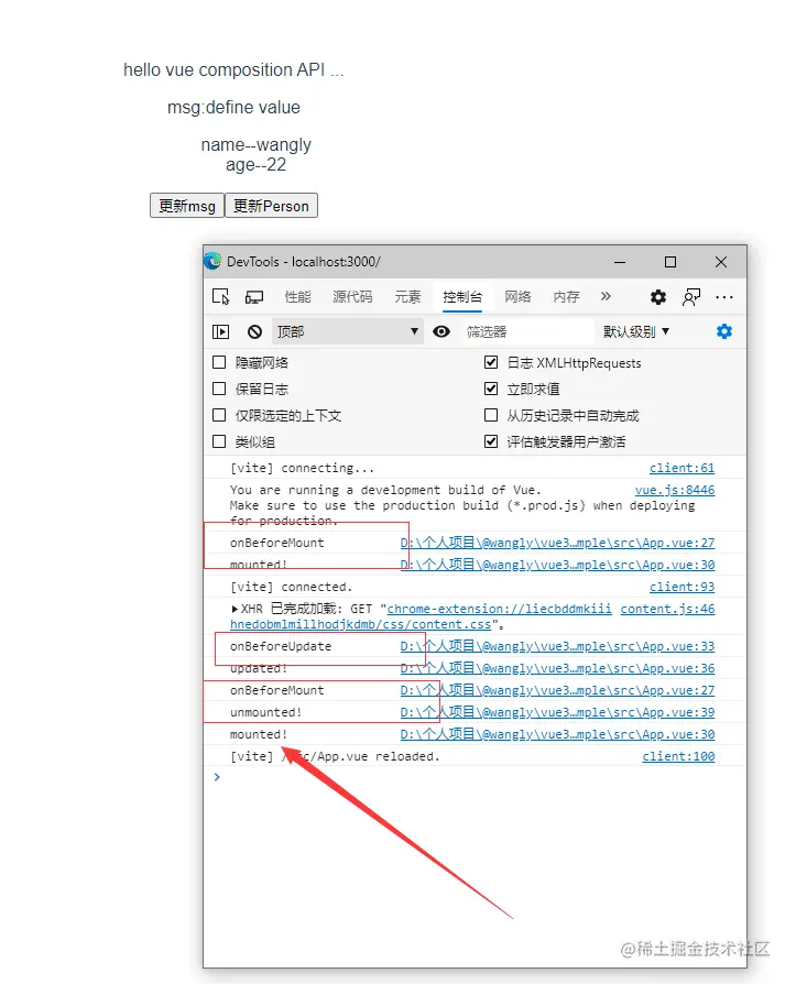 | onMounted | 对比2.x的mounted声明周期,此时可以访问到DOM了 |
