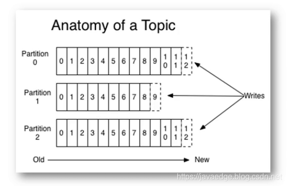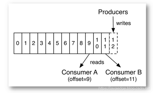 生产者向分区写入消息,每条消息在分区中的位置信息由一个叫位移(Offset)的数据来表征。