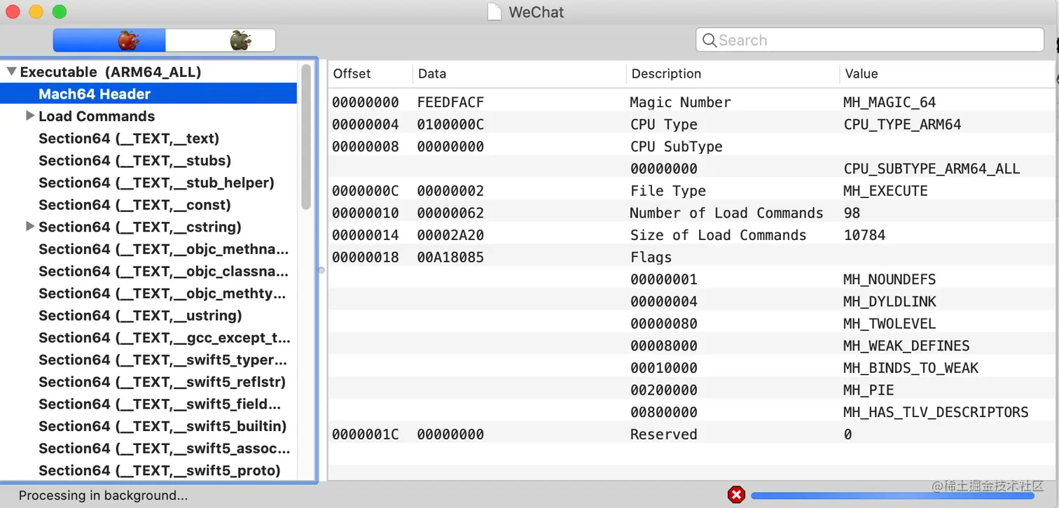 Magic Number代表当前Mach-O文件的架构是MH_MAGIC_64,所支持的架构是arm64架构
