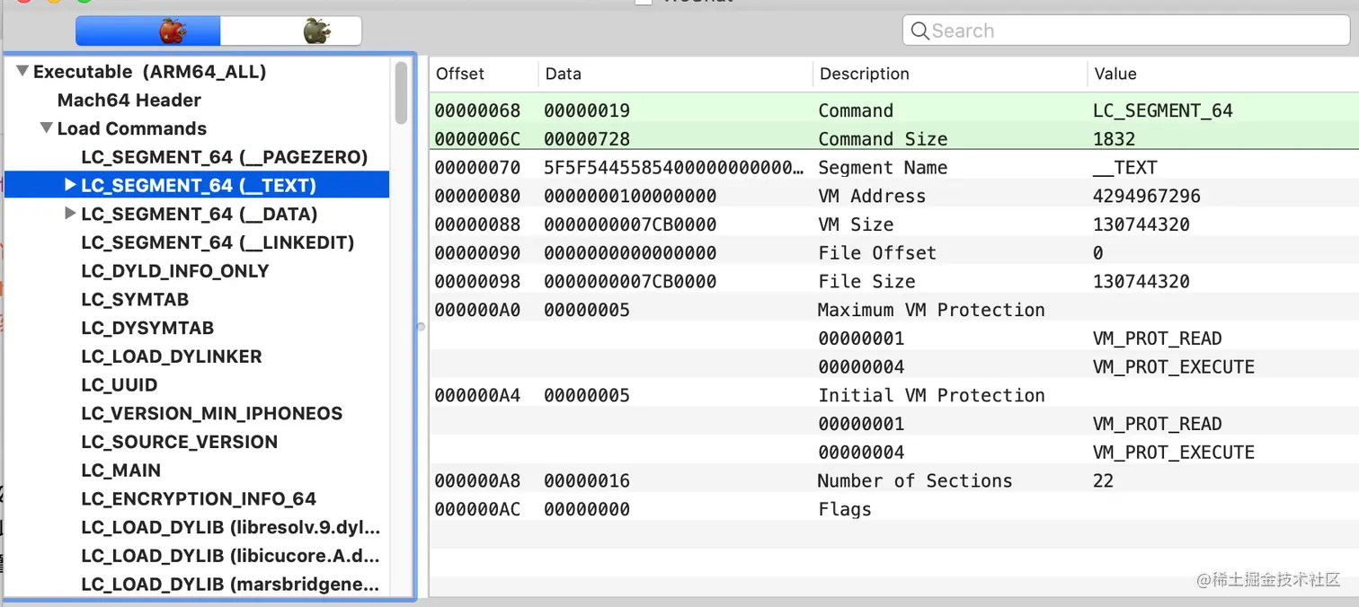 通过分析剩下的__DATA段、__LinkEDIT段等等可以得出以下结论