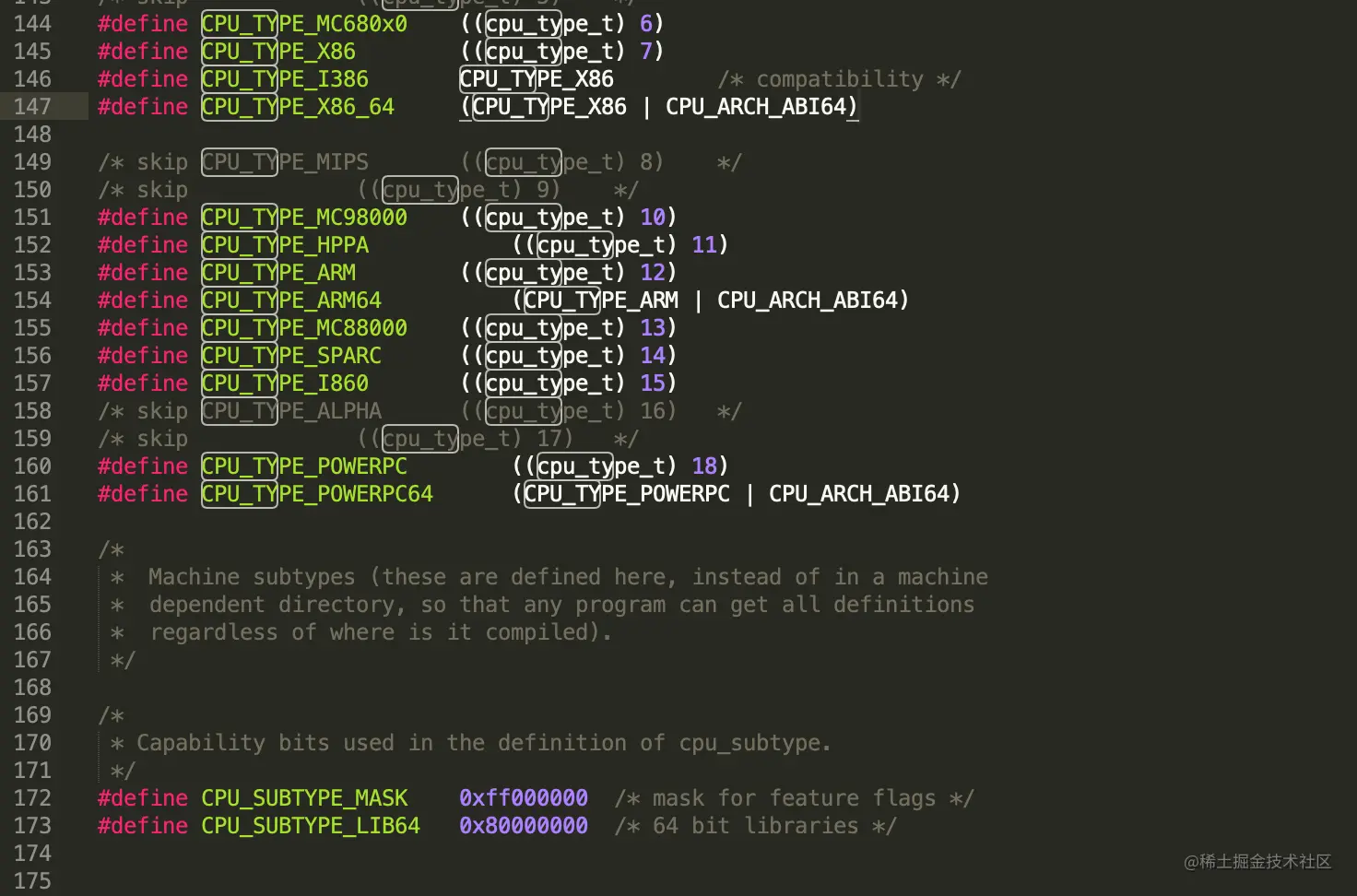 CPU Type、CPU SubType代表CPU的类型和子类型,在源码<mach/machine.h>中够可以看到具体的定义