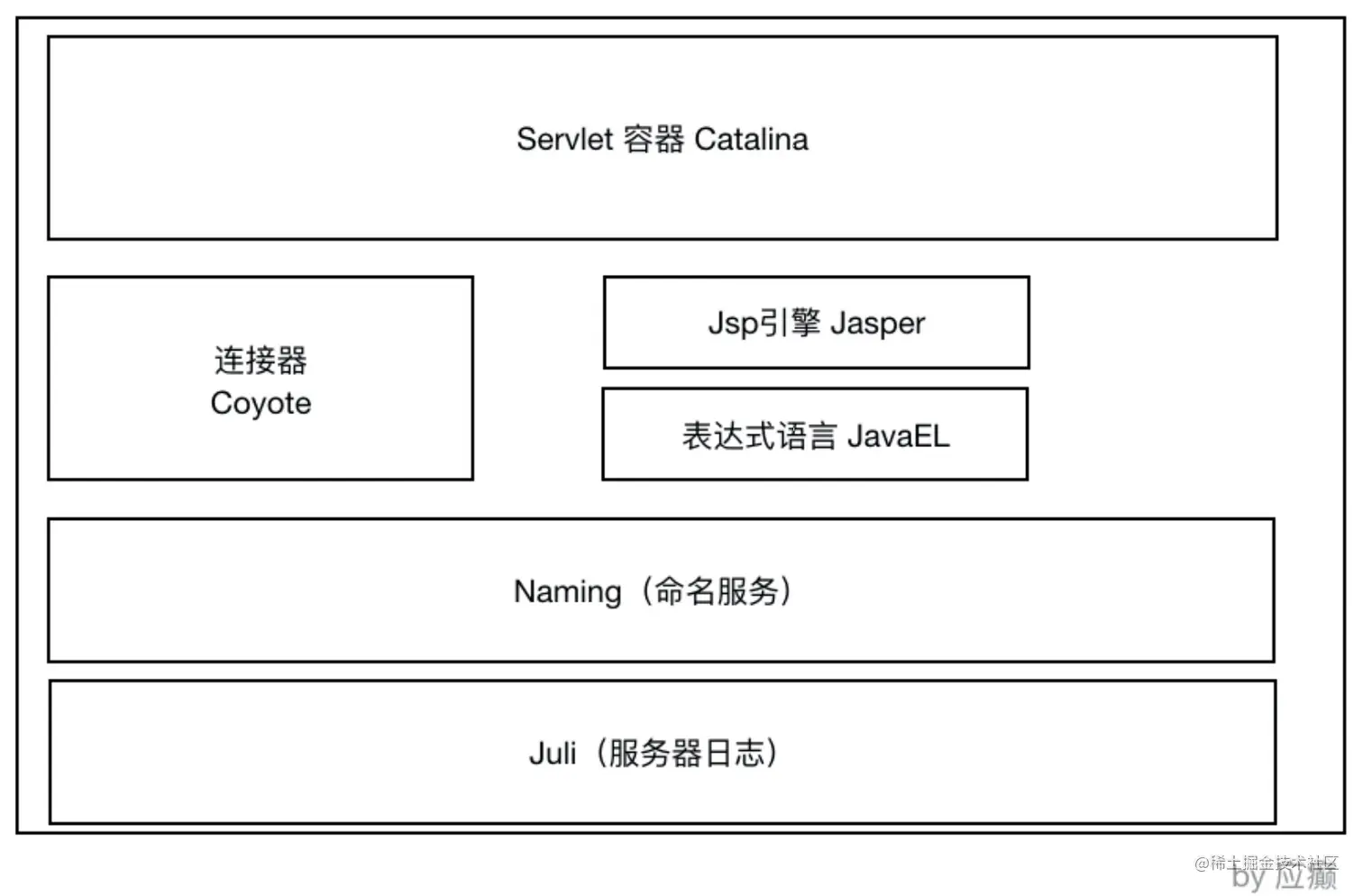 Coyote是Tomcat连接器组件的名称,是对外的接口。客户端通过Coyote与服务端建立连接、发送请求并接受响应。