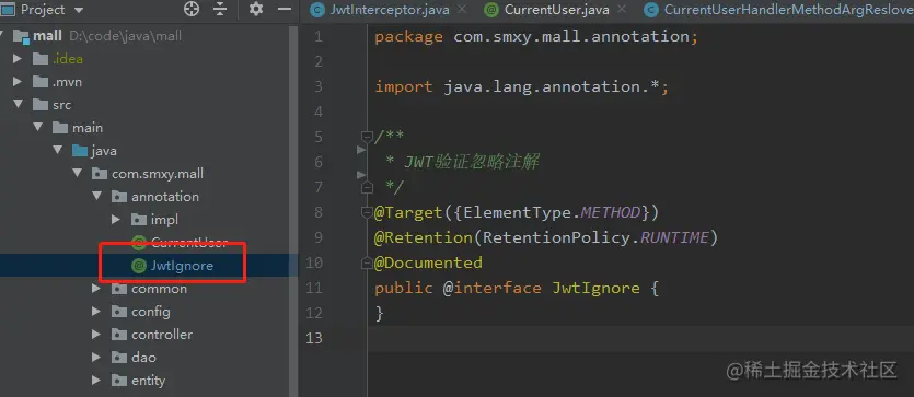 JwtIgnore JWT验证忽略注解