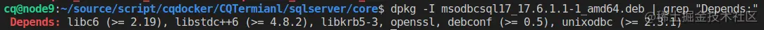 sudo dpkg -I msodbcsql17_17.6.1.1-1_amd64.deb | grep "Depends:"