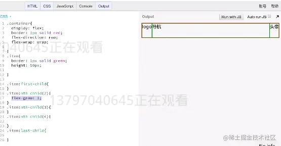 ** 注意!对于导航栏!一般都是使中间的内容为flex-grow:1,logo和头像都是设置为0,也就是默认不写。**