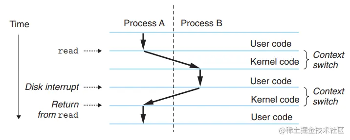 菜鸟提醒:系统调用不会涉及虚拟内存等进程用户态资源。该过程始终是同一个进程在运行。所以有些同学可能会讲系统调用过程通常称为特权模式切换,而不是上下文切换,但现实中,CPU上下文切换无法避免。