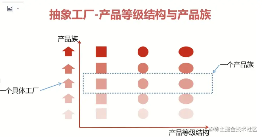 - 在抽象工厂模式中,有一个产品族的概念:所谓的产品族,是指位于不同产品等级结构中功能相关联的产品组成的家族。抽象工厂模式所提供的一系列产品就组成一个产品族;而工厂方法提供的一系列产品称为一个等级结构。