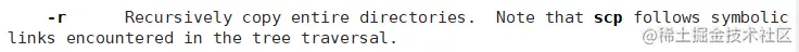 -r Recursively copy entire directories. Note that scp follows symbolic links encountered in the tree traversal.