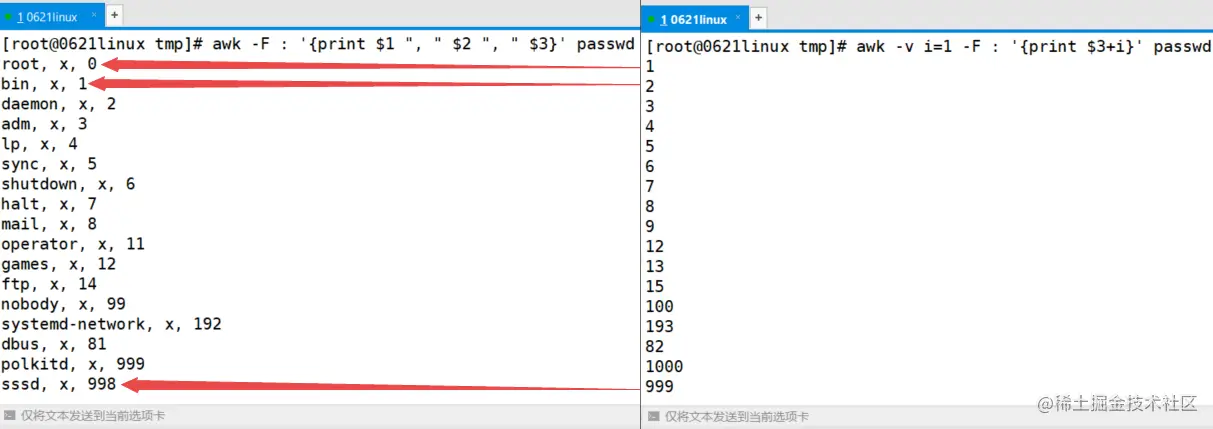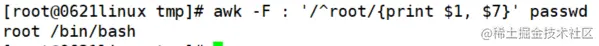 搜索passwd文件以root关键字开头的所有行,并输出该行的第7列: