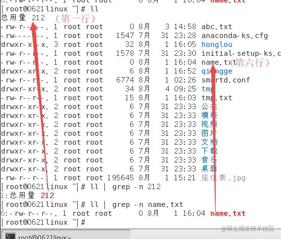 如(ll是两个小写L) ll | grep -n name.txt 结果如下: