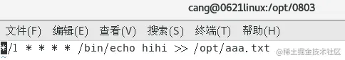 每隔1分钟,向/opt/aaa.txt文件中添加"hihi"
