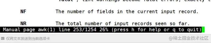 man查看说明时,快捷键gg、G(gg首,G尾)仍有效,若上下翻页,则按f、b(front、back)。