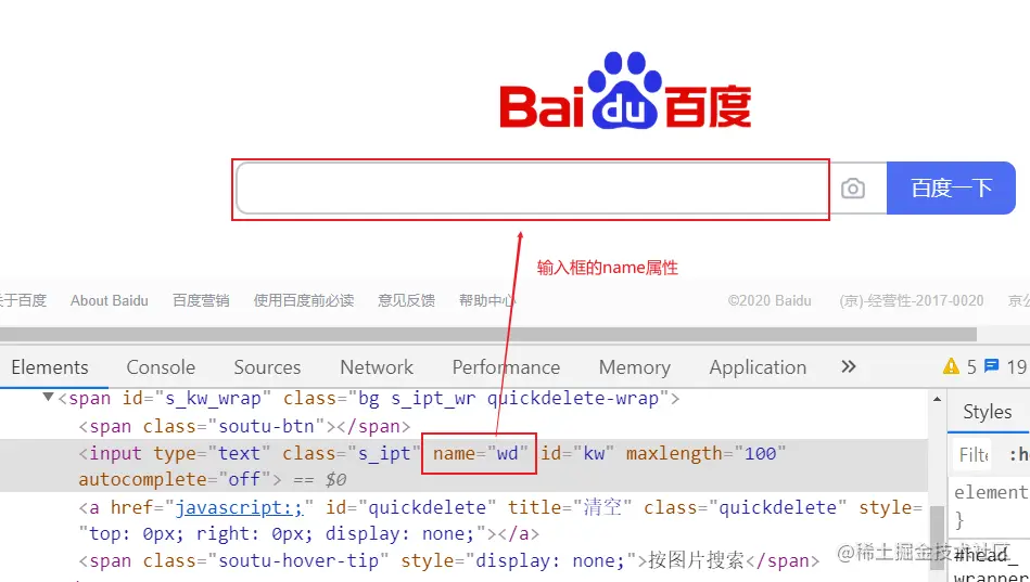 kw_element = driver.find_element_by_name("wd") # 通过 name 属性定位输入框