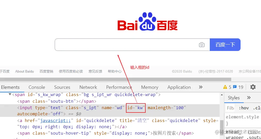 kw_element = driver.find_element_by_id("kw") # 通过 id 属性定位到输入框