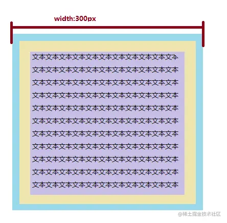 - 如果我们调整他的border和padding,内容也跟着自动缩放,以保证盒子最后的大小是300px