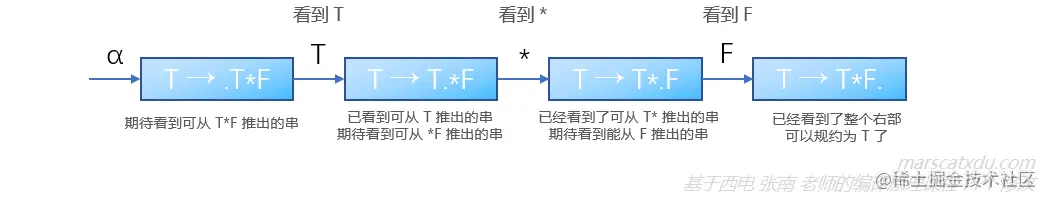项目说明分析过程中每个时刻已经看到了产生式的多大一部分,比如: