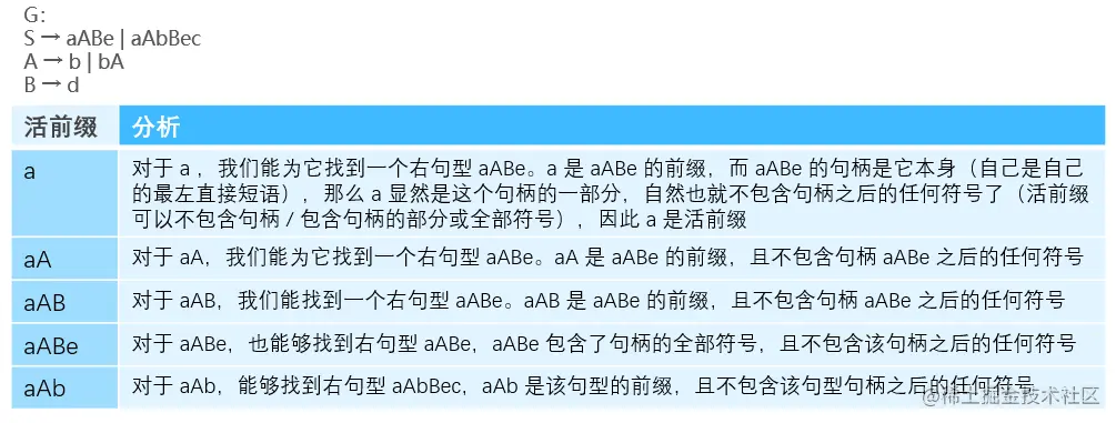 - 活前缀其实就是一个符号串,一个文法会有很多的活前缀;