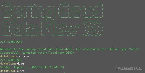 2020-08-02T02:06:41+0800 INFO main o.s.c.d.s.DataflowJLineShellComponent:311 - 2.5.3.RELEASE
