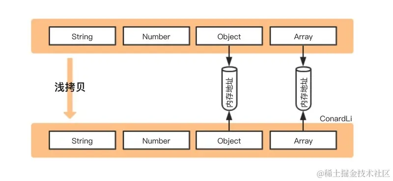 创建一个新对象,这个对象有着原始对象属性值的一份精确拷贝。如果属性是基本类型,拷贝的就是基本类型的值,如果属性是引用类型,拷贝的就是内存地址 ,所以如果其中一个对象改变了这个地址,就会影响到另一个对象。