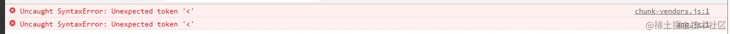 chunk-vendors.js:1 Uncaught SyntaxError: Unexpected token '<'