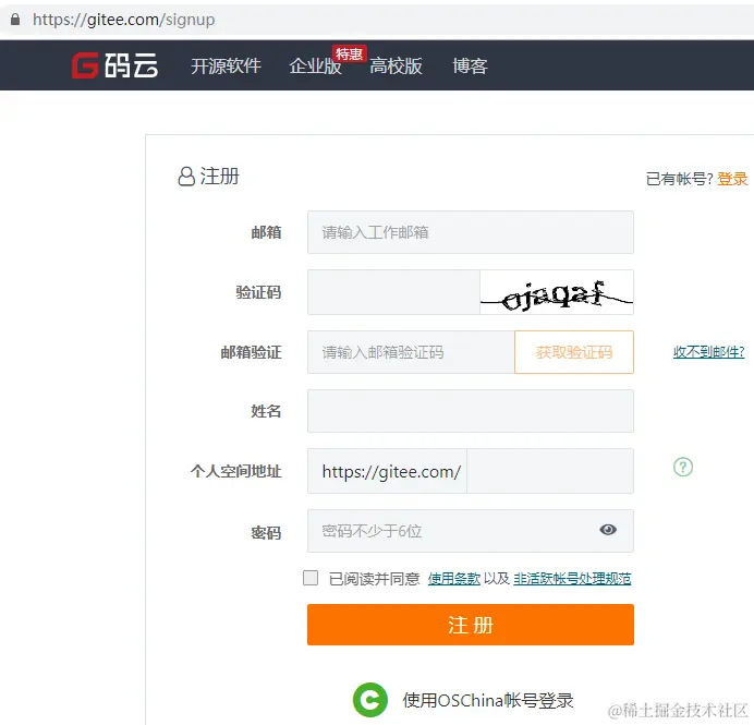 A.注册登录码云账号