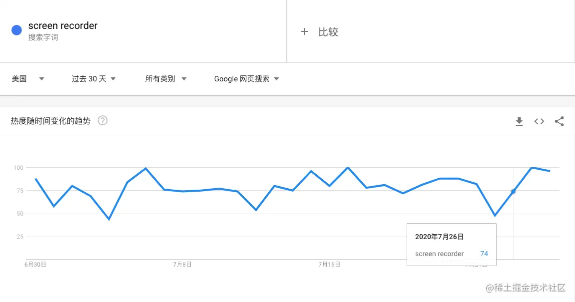 Google trends可以查看谷歌搜索引擎的词汇热度,最大值为100。下方有个相关查询也会推荐一些关键词,不过用户在搜索引擎和在App Store的搜索习惯还是有区别的,这个可以作为参考。