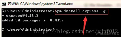 - 在命令行输入以下命令安装express(注:“-g”表示安装到global目录下,就是上面设置的node_global中)