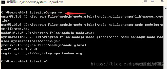 然后再次输入cnpm -v ,结果如下: