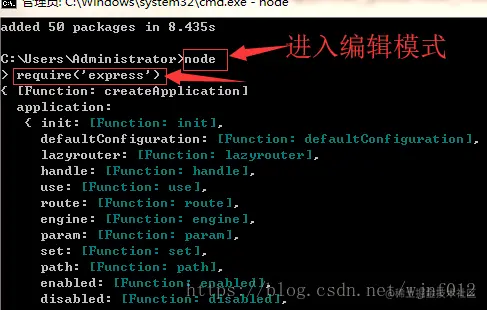 4. 在命令行输入node进入编辑模式,输入以下代码检测是否能正常加载模块: