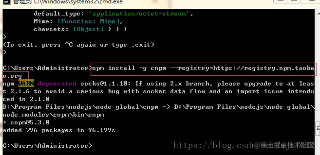 - 安装cnpm,输入以下命令: